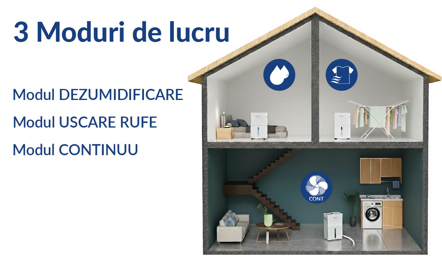 - Mod Continuu: functioneaza independent de umiditatea ambientala, in mod continuu