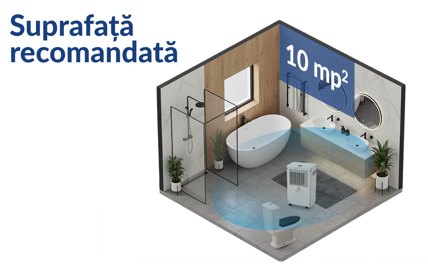 - Functie Fan Stop:Â dupa ce umiditatea dorita este atinsa, compresorul si ventilatorul se opresc automat, pentru economie de energie si functionare silentioasa