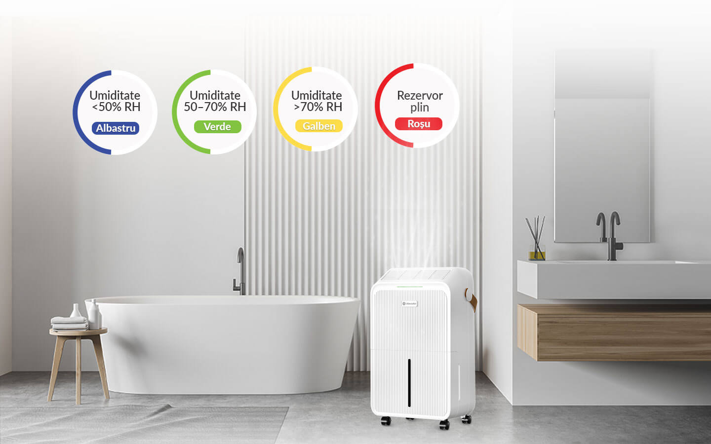 - Indicator color de umiditate, usor de citit dintr-o privire: albastru, verde, galben sau rosu, in functie de nivelul umiditatii