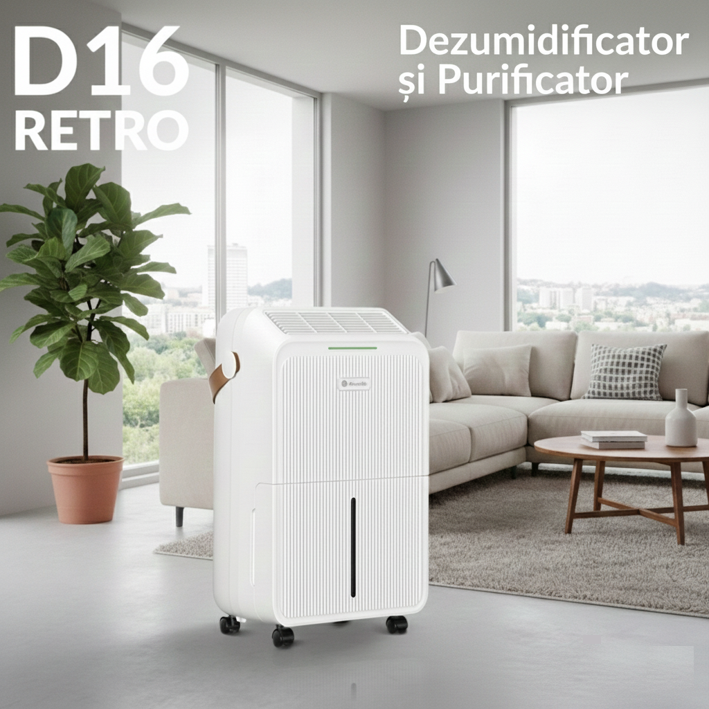 Cu D16 Retro, nu doar elimini umezeala. Simti diferenta in aer - mai curat, mai usor, mai sigur.