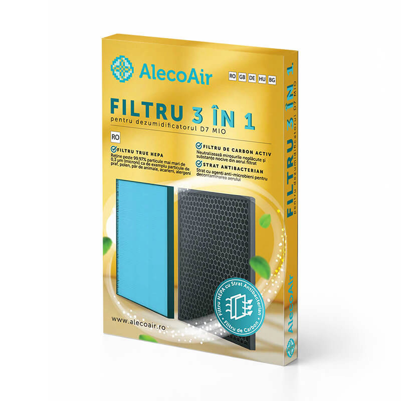 Filtrul 3 in 1 pentru dezumidificatorul D7 Mio este alcatuit din 3 parti menite sa filtreze si sa decontamineze aerul: