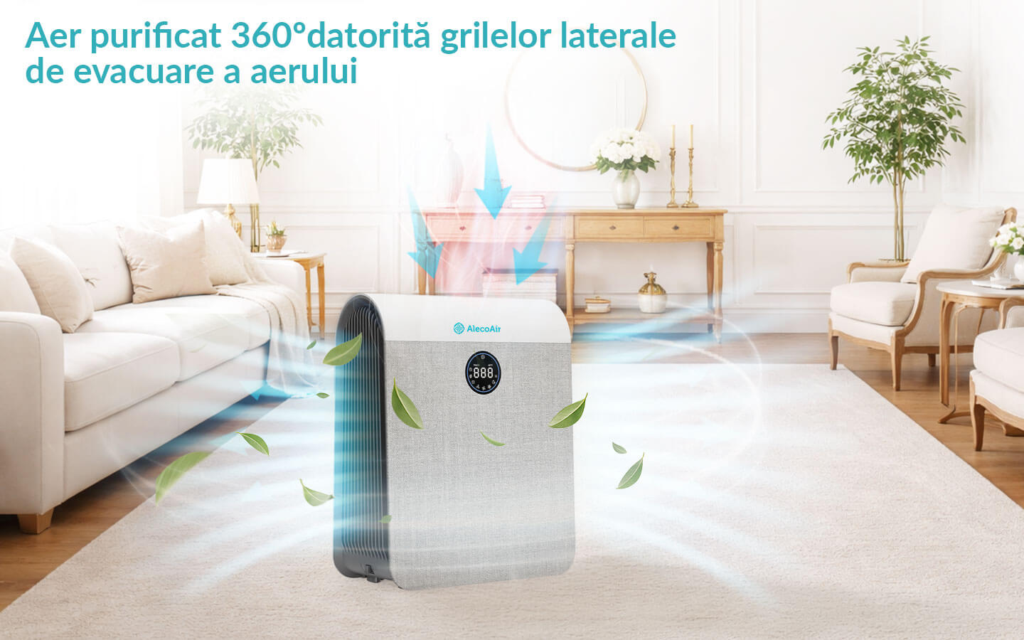- Filtru TRUE HEPA H13: Capteaza peste 99,97% dintre particulele mai mari de 0,3 microni, inclusiv polen, acarieni, spori de mucegai, bacterii si particule fine in suspensie. Este esential pentru persoanele alergice sau sensibile la praf.