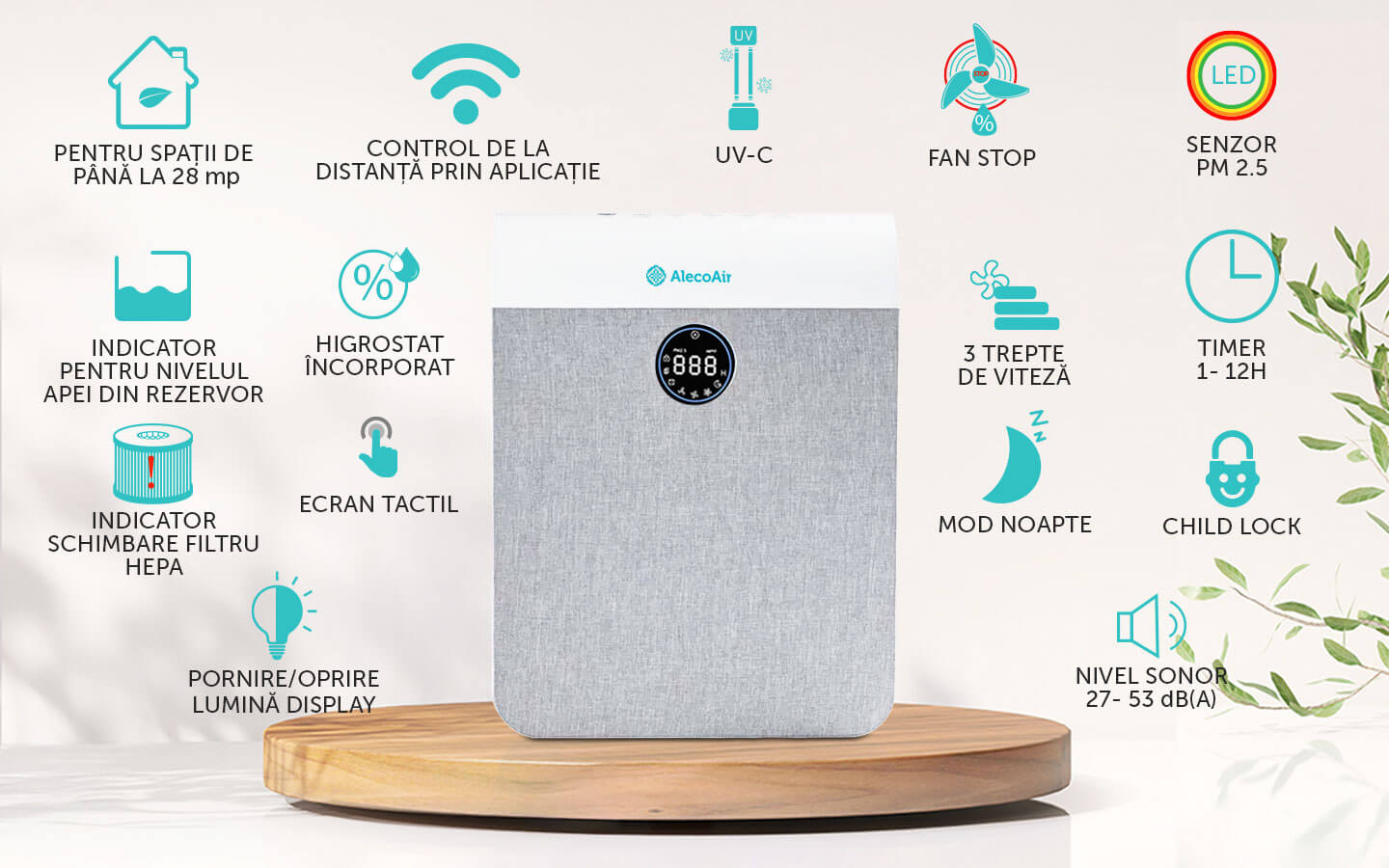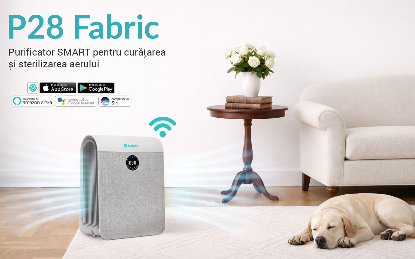 AlecoAir P28Fabric este conceput pentru locuinte moderne in care aerul curat si estetica lucreaza impreuna. Cu un design elegant, finisaj textil si linii minimaliste, aparatul se integreaza natural in living, dormitor sau birou.