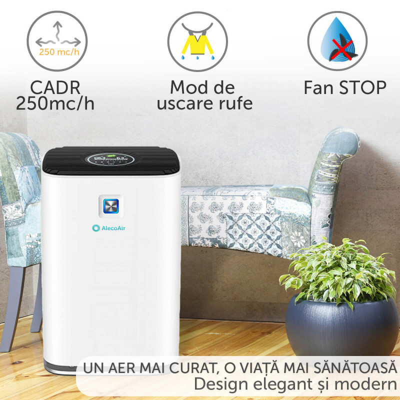 - Funcția de Purificare - Se poate folosi independent functia de purificare, fara pornirea compresorului, atunci cand nu ai nevoie de dezumidificare