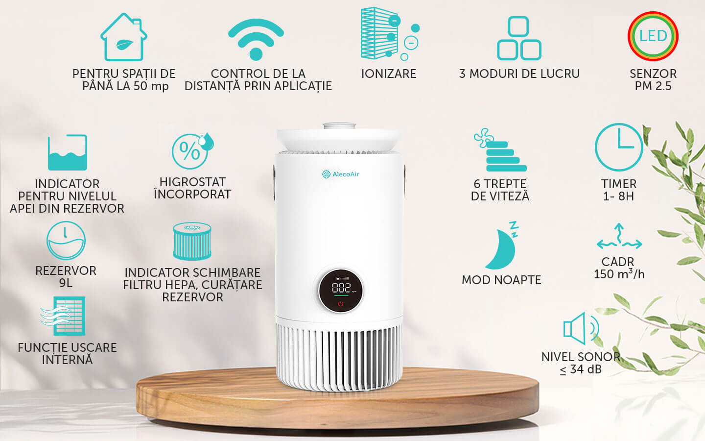 AlecoAir PU50 NUO foloseste un sistem avansat de purificare in 5 etape care asigura eliminarea prafului, polenului, alergenilor, bacteriilor si mirosurilor neplacute. Astfel, aerul din locuinta ta devine mai curat, mai sigur si mai usor de respirat pentru intreaga familie.