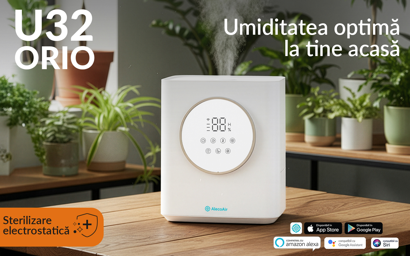AlecoAir U32 Orio Tower este creat pentru a-ti oferi confort avansat si un aer optim echilibrat. Cu o functionare eficienta si silentioasa, U32 Orio Tower mentine nivelul ideal de umiditate in incaperi de pana la 35 m², contribuind la o atmosfera mai sanatoasa si mai placuta in fiecare zi.