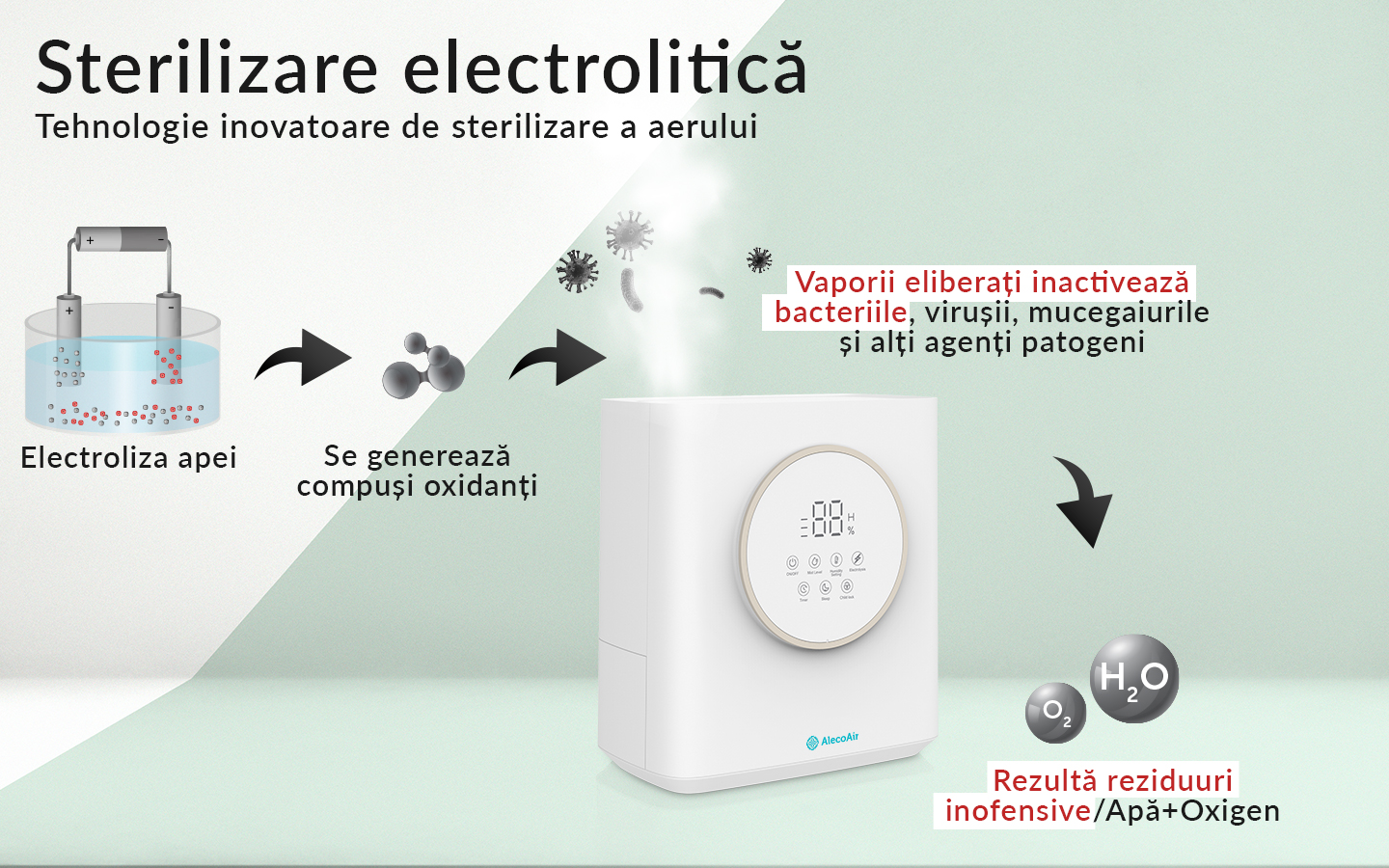 AlecoAir U32 Orio Tower – Umidificator ultrasonic cu functie electrolitica, aromaterapie si control inteligent al umiditatii